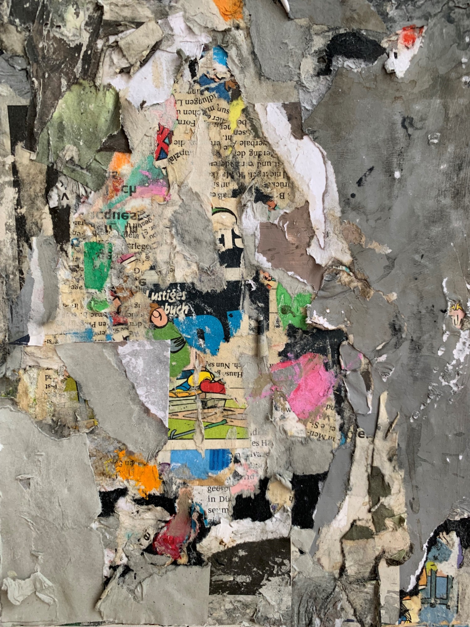 Meine Decollagen sind eine Einladung, das eigene Leben zu entrümpeln und in den Schichten aus Papier und Klebstoff nach der eigenen Wahrheit zu suchen. Zwischen dem „Zuviel“ und dem „Nichts“ liegt die Kunst des Seins.